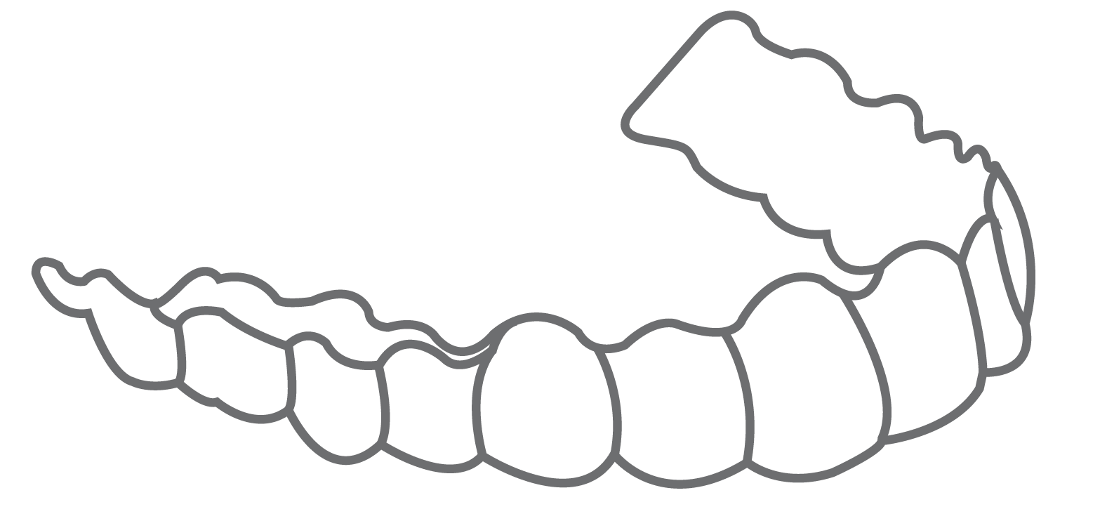 Ce sont des butées imprimées sur la plastique en arrière des incisives centrales du haut sur lesquelles viennent buter les incisives du bas pour faciliter leur ingression dans l’os, libérer l’occlusion et faciliter la correction de la supraclusion. Dans des décalages importants ces bites Ramps n’ont aucun effet. La phonation est très peu gênée par ces bites Ramps.