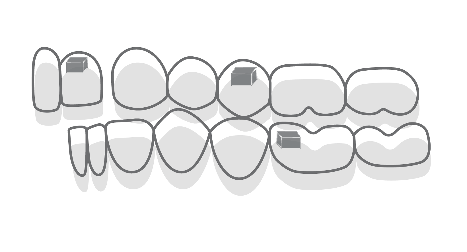 Par défaut, des taquets sont placés sur la plupart des dents. Les taquets sont de petits plots de composite transparent ou de la couleur des dents. Ces derniers permettent d’augmenter l’efficacité de certains mouvements. Les taquets Invisalign ® améliorent l’efficacité de l’appareillage, mais ont pour inconvénients de le rendre visible, avec comme des « bulles » dans la gouttière lors du port et de « petits plots » visibles lors du repas .